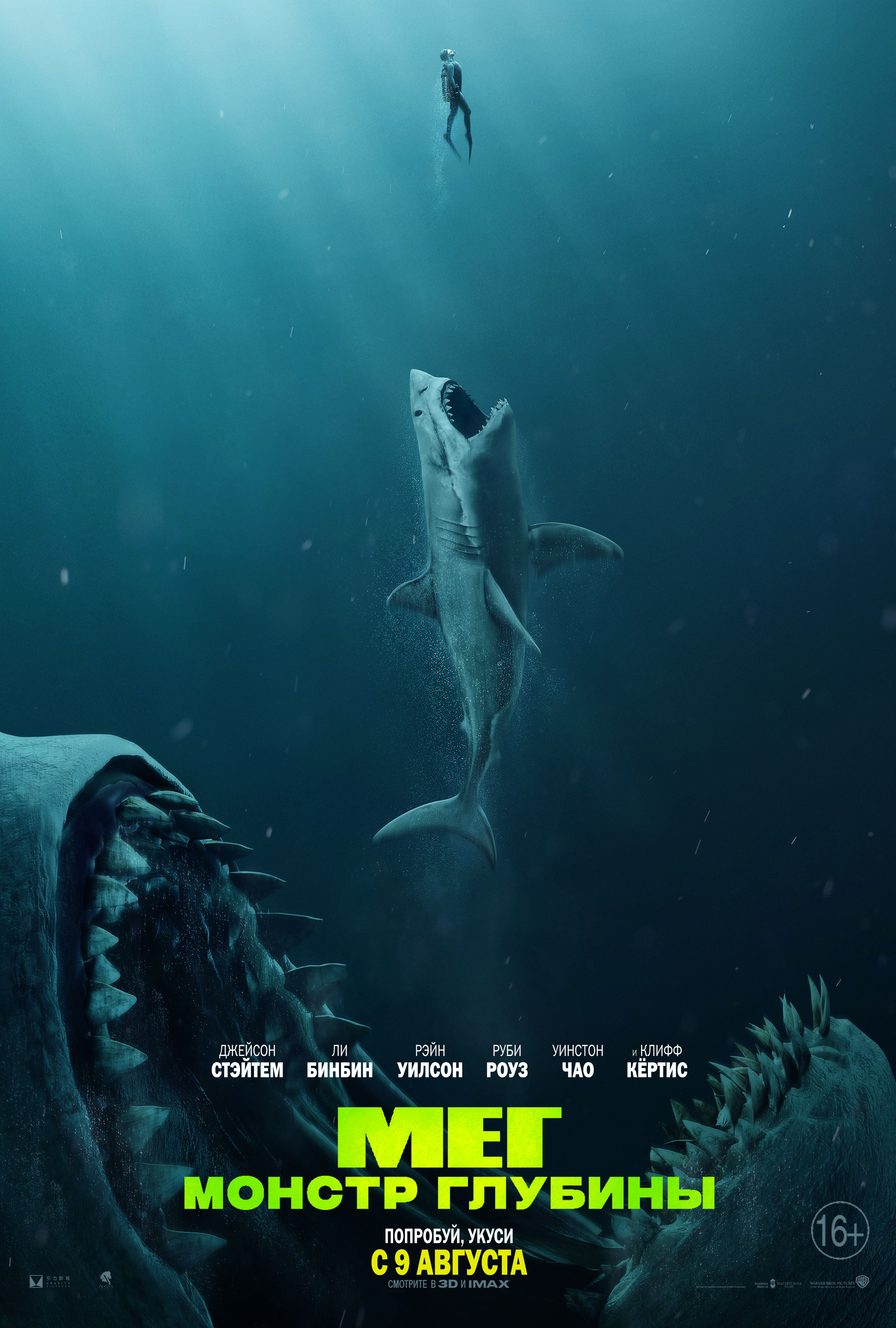 Глубоководный батискаф, осуществляющий наблюдение в рамках международной программы по изучению подводной жизни, был атакован огромным существом, которое все считали давно вымершим. Неисправный аппарат теперь лежит на дне глубочайшей впадины Тихого океана… с оказавшимся в ловушке экипажем. Их время на исходе. Китайский океанограф-новатор вопреки желанию своей дочери Сюин зовёт спасателя-подводника Джонаса Тейлора, чтобы тот помог спасти команду — и океан — от невиданной угрозы — доисторической 23-метровой акулы, мегалодона. Никто и подумать не мог, что много лет назад Тейлор уже сталкивался с этим чудовищным созданием.