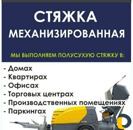 Выполним профессионально полусухую стяжку пола по немецкой технологии: - офисы, - квартиры, - коттеджи, - дачи и др объекты. Используем для полусухой стяжки только качественные материалы и профессиональное оборудование. Без залития соседей и трещин. Идеально ровный пол за один день не требующий дополнительного выравнивания под чистовую отделку(ламинат, паркетная доска, линолеум,ковролин ит д). Работаем со своим и вашим материалом. Мы предлагаем: механизированная стяжка, немецкая стяжка, быстрая стяжка, полусухая стяжка пола, стяжка пола, сухая стяжка, выравнивание пола, ровный пол, стяжка пола с фиброволокном. Выезд специалиста для замера и расчета БЕСПЛАТНО.Сотрудничаем с прорабами . Работаем без выходных. Не фирма ,а собственник