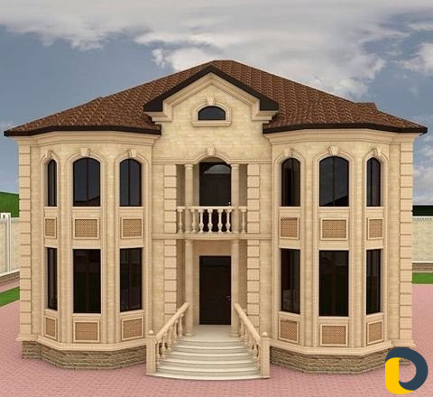 Облицовка фасадов домов из натурального природного камня установка болясин и колонн качество 100%.